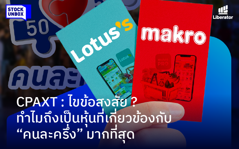 STOCK Unbox - CPAXT ได้รับประโยชน์จากโครงการคนละครึ่งเป็นอย่างมาก เนื่องจากบริษัทดำเนินธุรกิจค้าปลีก-ค้าส่งขนาดใหญ่ที่ครอบคลุมกลุ่มลูกค้าทั้งผู้บริโภคทั่วไปและผู้ประกอบการรายย่อย ซึ่งเป็นกลุ่มเป้าหมายหลักของโครงการนี้