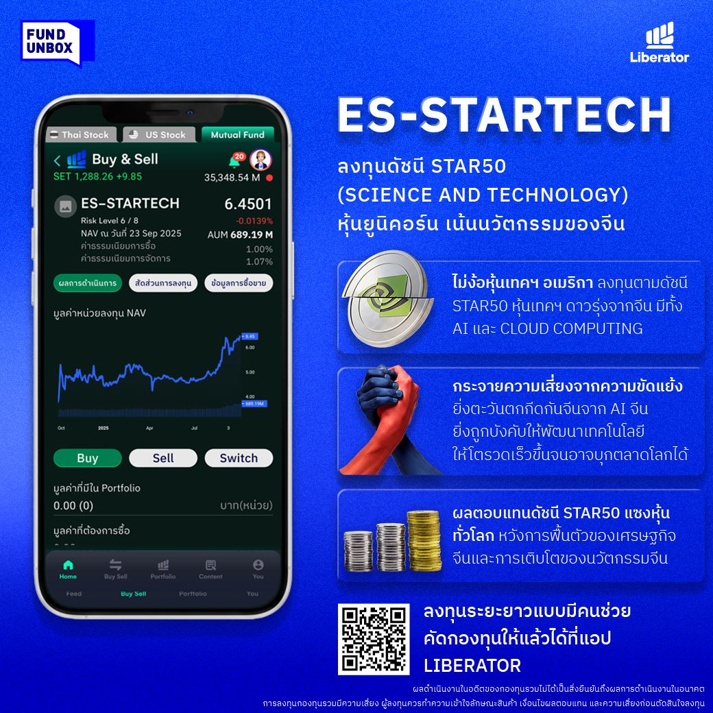 คำตอบอาจซ่อนอยู่ที่ หุ้นกลุ่ม STAR50 ตัวแทนหุ้นยูนิคอร์น ผู้เตรียมสร้างนวัตกรรมยุคใหม่จากเมืองจีน โดยเราเข้าไปมีส่วนร่วมได้ในกองทุนรวม ES-STARTECH
