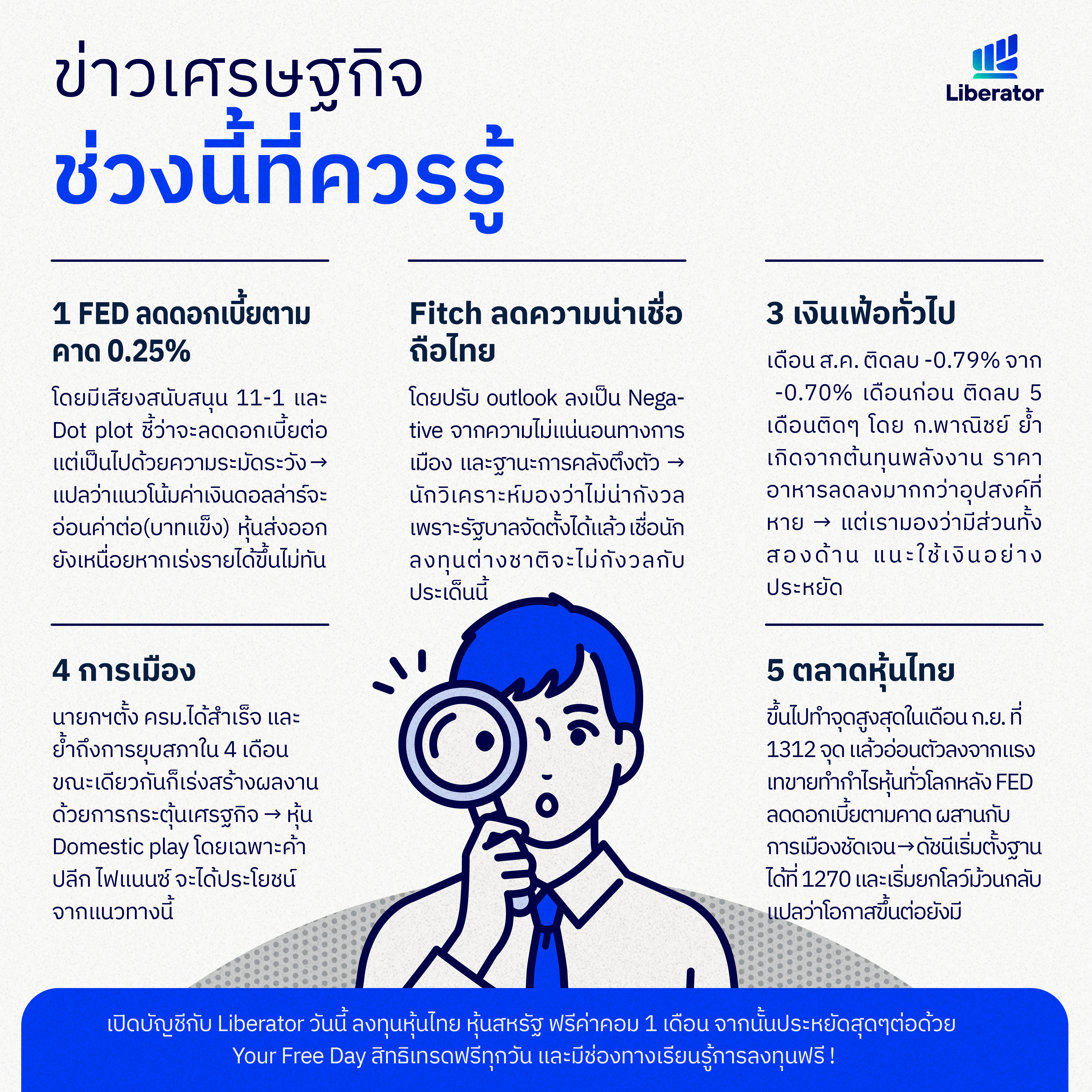 โดยมีเสียงสนับสนุน 11-1 และ Dot plot ชี้ว่าจะลดดอกเบี้ยต่อแต่เป็นไปด้วยความระมัดระวัง → แปลว่าแนวโน้มค่าเงินดอลล่าร์จะอ่อนค่าต่อ(บาทแข็ง) หุ้นส่งออกยังเหนื่อยหากเร่งรายได้ขึ้นไม่ทัน