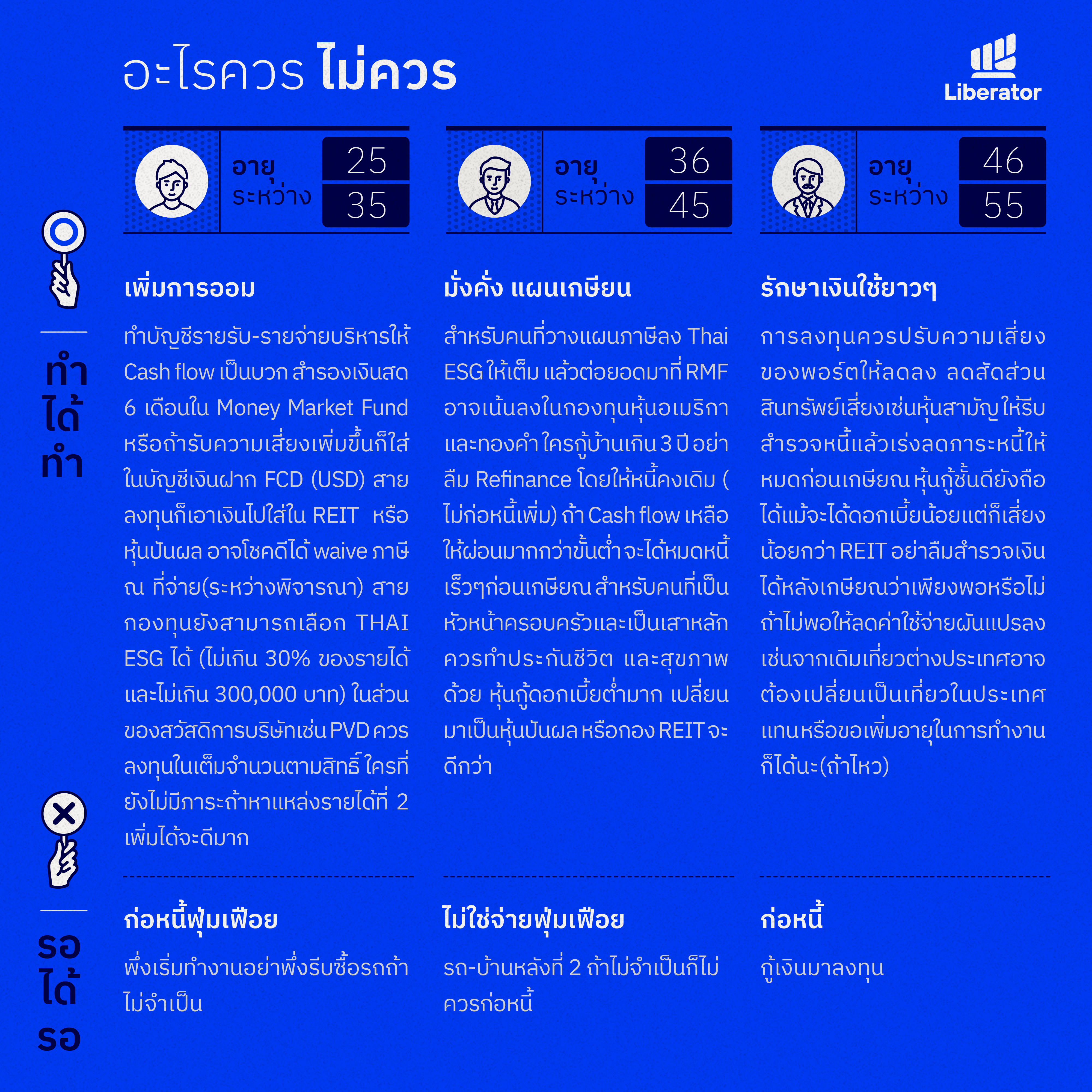 ทำบัญชีรายรับ-รายจ่ายบริหารให้ Cash flow เป็นบวก สำรองเงินสด 6 เดือนใน Money Market Fund หรือถ้า